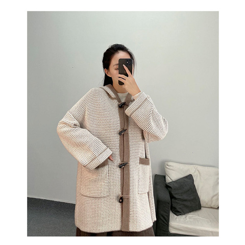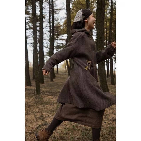 Mongolian cardigan com capuz feminino, casaco longo de malha casaco de caxemira 100% de caxemira