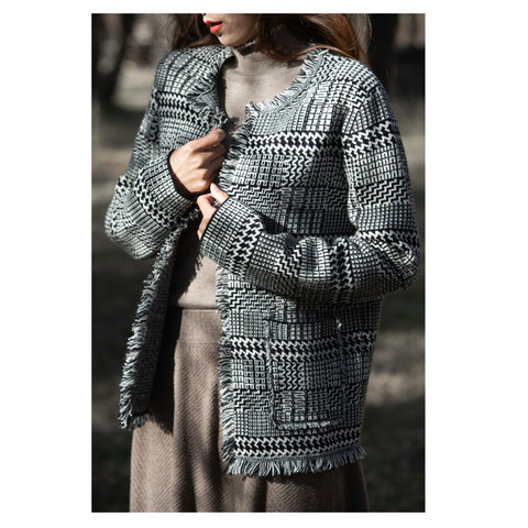 Casaco feminino cropped de caxemira, caxemira interna de lã mongolia 100%