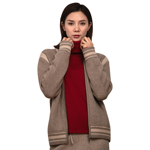 Casaco de lã de caxemira feminino, camiseta de malha marrom quente e preta com dupla face
