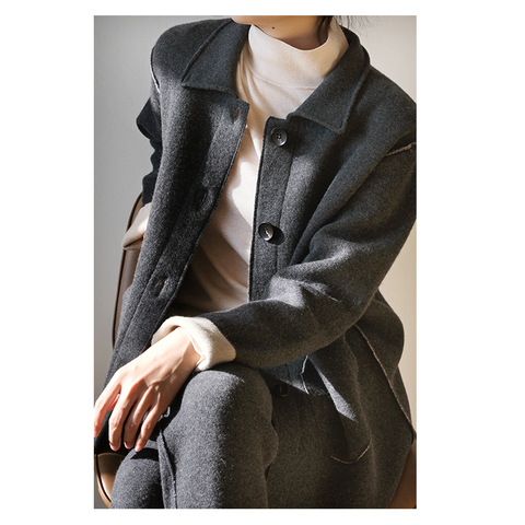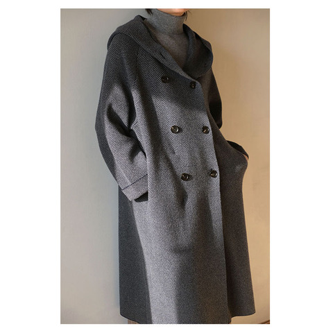 Casaco de lã caxemira longa feminino, caxemira longa e dupla alta para o inverno 2022 34 mangas para mulheres