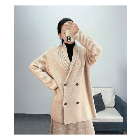 Casaco feminino de lã caxemira, cardigan de malha dupla face real 100%